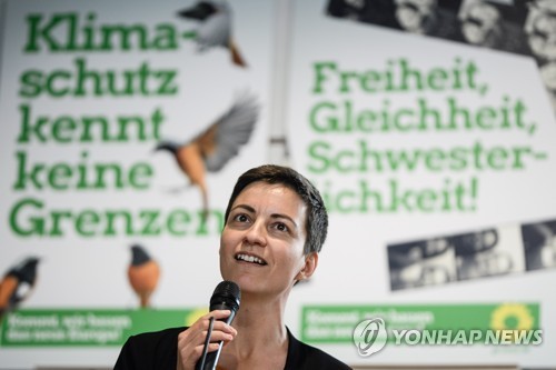 Green party (Die Gruenen) top candidate for the European Parliament elections Ska Keller speaks at the European Parliament election's camp of the Green party in Berlin, Germany, 27 April 2019. The European Parliament elections are held the member countries of the European Union from 23 to 26 May 2019, in Germany and Austria on 26 May 2019. The posters in sthe background read 'Climate protection know no borders' and 'Liberty, Equality, Sisterhood' EPA/CLEMENS BILAN