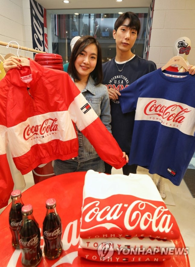 (서울=연합뉴스) 현대백화점그룹 계열 패션전문기업 한섬의 자회사인 현대G&F가 타미진스 '코카콜라 캡슐 컬렉션'을 출시한다고 28일 밝혔다. 이번에 출시한 상품은 총 34종으로 코카콜라 로고 티셔츠(7만5,000원)·하이넥 팝오버 재킷(21만5,000원)·스웨트셔츠(17만5,000원) 등이 있다. 2019.4.28 [현대G&F 제공]