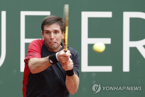 Federico Delbonis of Argentina in action during his match against Grigor Dimitrov of Bulgaria at the ATP 250 Geneva Open tennis tournament in Geneva, Switzerland, 21 May 2019. EPA/SALVATORE DI NOLFI