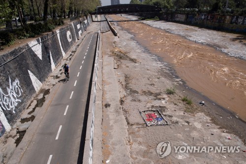 View of an improvised altar in the place where last 02 October a protester was allegedly pushed by the police and fell into the water, after which he was admitted to a hospital with several fractures but in a stable state, in Santiago, Chile, 07 October 2020. EPA/Alberto Valdes