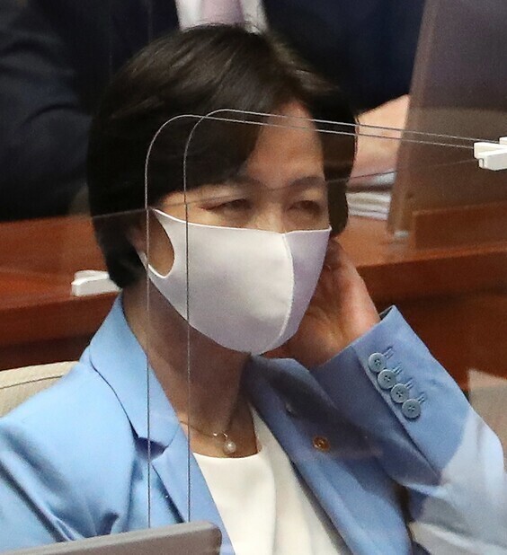 추미애 법무부 장관이 지난달 8일 오후 열린 국회 본회의에 출석해 국무위원석에 앉아 있다. 공동취재사진추미애 법무부 장관 아들의 특혜 휴가 의혹을 처음 제기했던 당직사병 현아무개씨가 추 장관 등을 명예훼손 혐의로 고소하겠다고 밝혔다. 현씨 쪽은 근거로 “추 장관 아들 서아무개씨도 당직사병과의 통화사실을 인정했다”는 검찰 관계자와의 통화 내용을 공개했다.