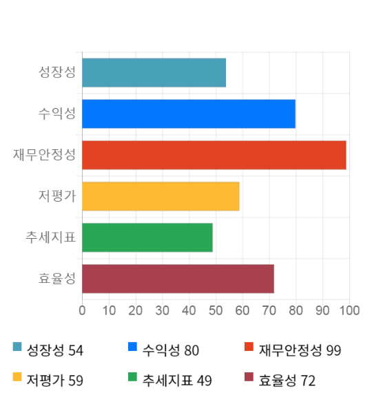 (위의 AI인공지능 점수는 재무 데이터를 기반으로 전체 상장 종목과 비교/분석하여 도출한 점수로 높은 점수가 반드시 높은 수익률을 보장하지 않습니다. 위의 자료는 당사의 추천 종목이 아니며, 투자 시 참고용으로 제시해드리는 것입니다. 핵심투자지표를 결합해 종목의 투자매력도를 종합 계산한 "인공지능 투자점수"는 "거장들의 투자공식" 앱에서 확인하실 수 있습니다.)