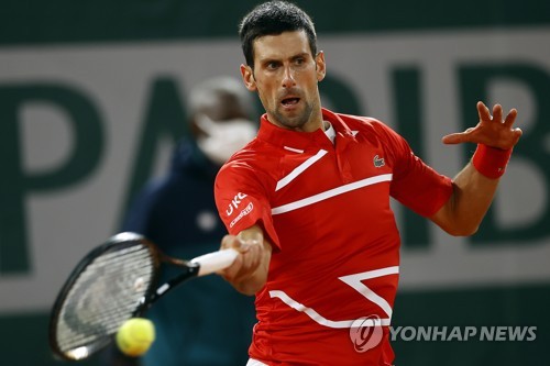 Novak Djokovic of Serbia in action against Stefanos Tsitsipas of Greece during their men?s semi final match during the French Open tennis tournament at Roland ?Garros in Paris, France, 09 October 2020. EPA/IAN LANGSDON