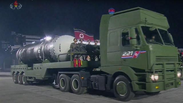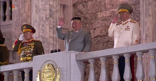 북한 조선중앙TV가 10일 오후 노동당 창건 75주년 경축 열병식을 방송하고 있다. 평양=조선중앙TV 캡처 뉴시스