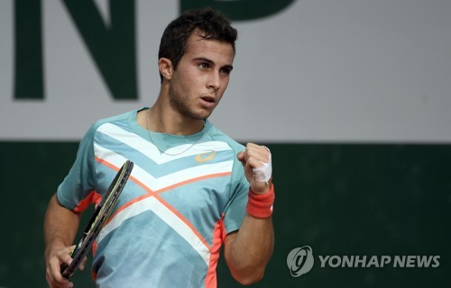 Hugo Gaston of France reacts as he plays Yoshihito Nishioka of Japan during their men?s second round match during the French Open tennis tournament at Roland ?Garros in Paris, France, 30 September 2020. EPA/JULIEN DE ROSA