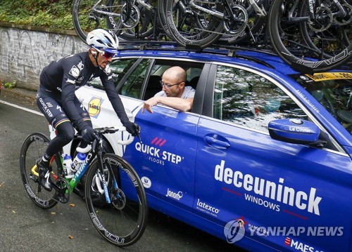 epaselect epa08719194 Road cycling World champion, French rider Julian Alaphilippe of the Quick-Step team, is on his way during the Liege-Bastogne-Liege one day classic cycling race in Liege, Belgium, 04 October 2020. EPA/JULIEN WARNAND