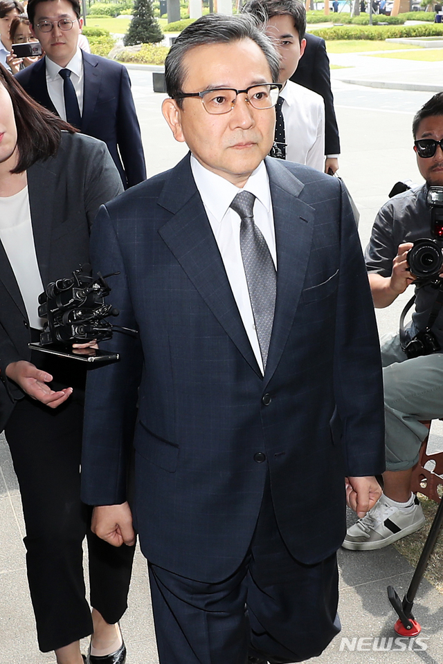 【서울=뉴시스】이윤청 기자 = 김학의 전 법무부 차관이 뇌물수수와 성범죄 의혹 관련 피의자 신분 조사를 받기 위해 12일 오후 서울 송파구 서울동부지방검찰청으로 들어서고 있다. 2019.05.12.