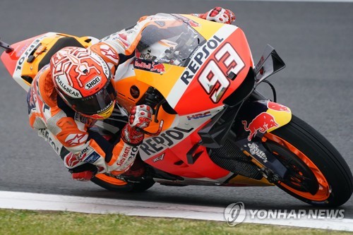 Spanish Moto GP rider Marc Marquez of Repsol Honda Team during the Qualifying Session of the MotoGP race of the French Motorcycling Grand Prix at Le Mans race track, in Le Mans, France, 18 May 2019. The Motorcycling Grand Prix of France will take place on 19 May 2019. EPA/EDDY LEMAISTRE