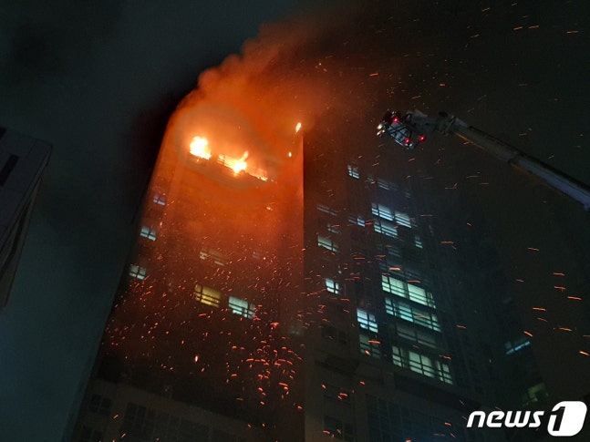 (서울=뉴스1) 윤일지 기자,조민주 기자 = 울산 남구 달동 삼환아르누보 주상복합아파트에서 대형 화재가 발생했다.