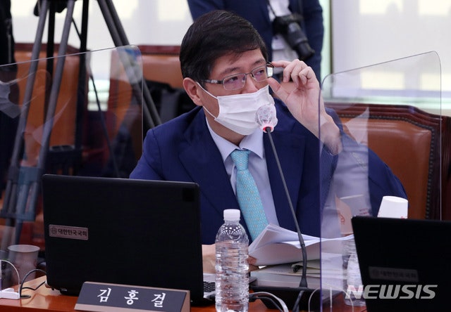 [서울=뉴시스] 김선웅 기자 = 김홍걸 무소속 의원이 지난 7일 오전 서울 여의도 국회에서 열린 외교통일위원회의 외교부에 대한 국정감사에서 의사진행발언을 하고 있다. (공동취재사진) 2020.10.07. [email protected][서울=뉴시스] 김재환 기자 = 총선 후보자 시절 재산을 축소해 신고한 의혹을 받는 김홍걸 무소속 의원이 검찰에 처음 출석했다.10일 법조계에 따르면 서울중앙지검 공공수사2부(부장검사 권상대)는 이날 오전 김 의원을 소환했다.
