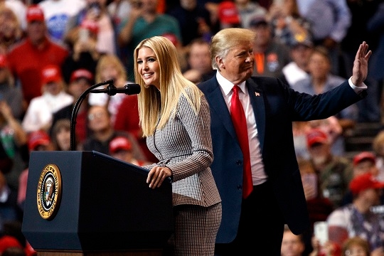 도널드 트럼프 미국 대통령(오른쪽)과 그의 장녀인 이방카 트럼프 백악관 선임보좌관. AP뉴시스