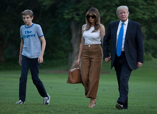 오른쪽부터 트럼프 대통령, 영부인 멜라니아 여사, 막내아들 배런. AP뉴시스