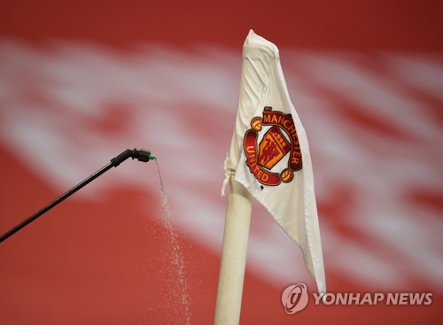 Ground staff disinfects the corner flag during the English Premier League match between Manchester United and Tottenham Hotspur in Manchester, Britain, 04 October 2020. EPA/Oli Scarff / POOL EDITORIAL USE ONLY. No use with unauthorized audio, video, data, fixture lists, club/league logos or 'live' services. Online in-match use limited to 120 images, no video emulation. No use in betting, games or single club/league/player publications.