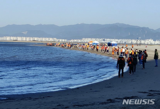 [부산=뉴시스] 중학생 1명이 실종된 부산 사하구 다대포해수욕장에서 6일 오전 부산해경, 부산소방재난본부 등이 이틀째 합동 수색을 펼치고 있다. (사진=부산소방재난본부 제공). 2020.10.06.