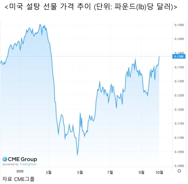 원당 선물 가격은 지난 4월엔 신종 코로나바이러스 감염증(코로나19) 영향으로 파운드당 9.4센트까지 급락했다. 사람들의 설탕 소비량이 높은 영화관, 스포츠 경기장, 카페 등이 대거 운영을 중단하면서 설탕 소비가 떨어졌기 때문이다.