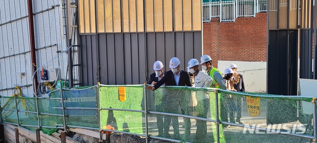 [서울=뉴시스] 조수정 기자 = 박삼득 국가보훈처장이 7일 든든한보훈 정책현장 간담회를 위해 서울시 중구 임시정부기념관건립추진단 방문에 앞서 임시정부기념관 건립부지를 찾아 현장 확인 및 관계자들을 격려하고 있다. (사진=국가보훈처 제공) 2020.10.07.