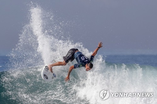 Deivid Silva of Brazil in action during round of 32 at the Corona Bali Protected surfing event as part of the 2019 World Surf League in Keramas, Bali, Indonesia, 19 May 2019. EPA/MADE NAGI