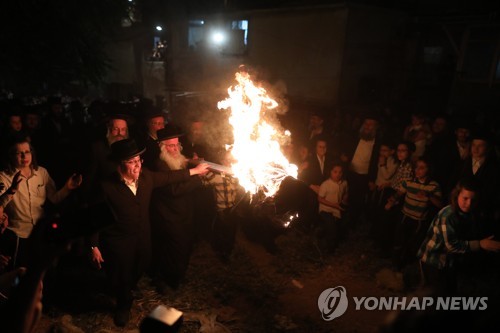 Ultra Orthodox Jews light a large bonfire in the neighborhood of Mea Shearim in Jerusalem, Israel, 22 May 2019, during the commemoration the holy day of Lag Ba'Omer. The day marks the anniversary of the death of Rabbi Shimon bar Yochai, a sage from some 1,800 years ago, and the day on which he revealed the secrets of the 'kabbalah,' or Jewish mysticism. EPA/ABIR SULTAN