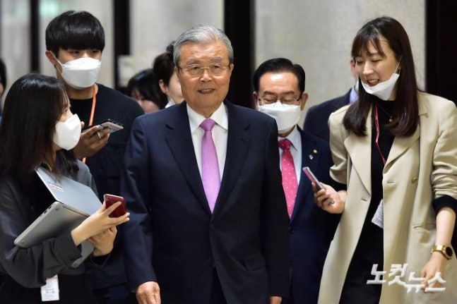 미래통합당 김종인 비상대책위원장이 4일 오전 국회에서 열린 당 비상대책위원회의에 참석하고 있다.