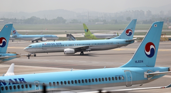 지난달 26일 서울 김포공항 국내선 계류장에 대한항공 항공기가 대기중이다./사진=뉴스1 제공 |