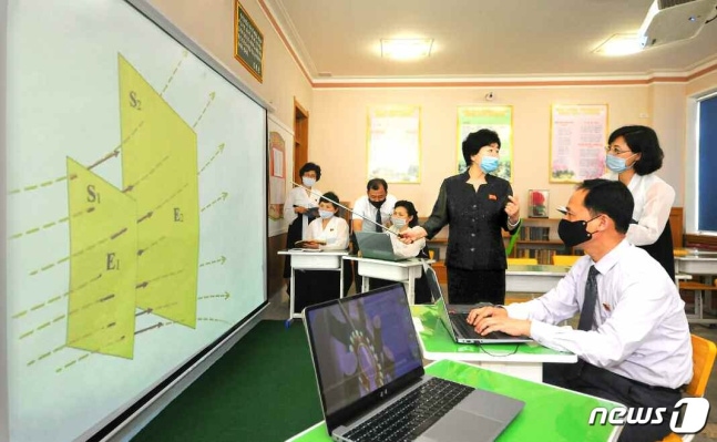 (평양 노동신문=뉴스1) = 북한 노동당 기관지 노동신문은 10일 '교육 혁명의 불길 높이 중등 일반 교육 수준을 끊임없이 높여나가자'라는 특집 기사를 싣고 각지 학교의 교수법을 조명했다. 신문은 이날 평양에 있는 모란봉 제1중학교 교원들을 소개하며 "교수 내용과 방법을 개선하기 위한 사업을 심화시키고 있다"라고 전했다.