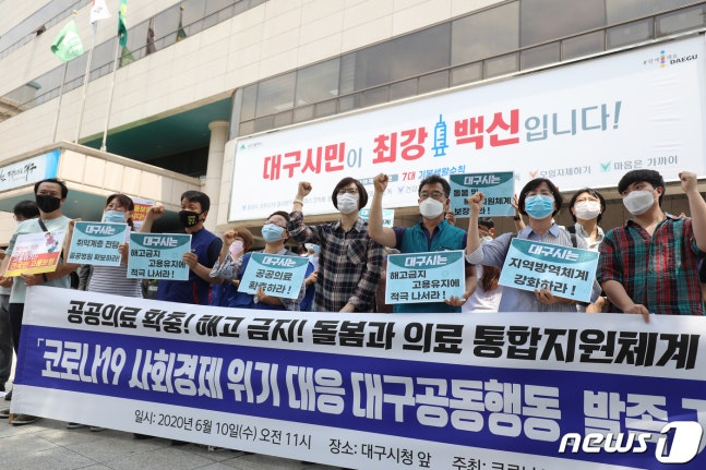 시민단체와 보건의료단체 등 47개 단체로 구성된 코로나19 대구행동은 이날 출범해 대구시의 코로나19 대응을 감시하는 등의 본격적인 활동에 들어갔다. 2020.6.10/뉴스1
