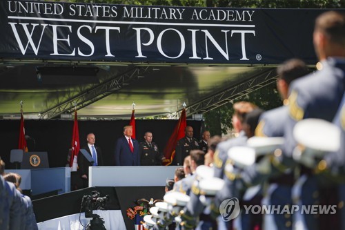 President Donald J. Trump looks out onto United States Military Academy graduating cadets during commencement ceremonies in West Point, New York, USA, 13 June 2020. US President Donald J. Trump attended the graduation and delivered the commencement address. EPA/JOHN MINCHILLO / POOL POOL