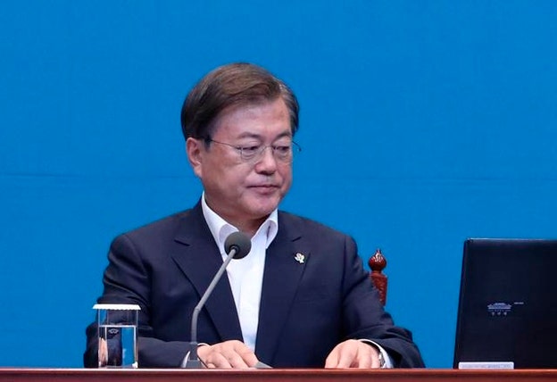 문재인 대통령이 지난 15일 청와대에서 열린 수석·보좌관 회의에서 발언을 마친 뒤 굳은 표정을 짓고 있다. /연합뉴스문 대통령은 전날 6·15 남북공동선언 20주년 기념식 축사에서 "남과 북이 자주적으로 할 수 있는 사업도 분명히 있다"고 말했다. 국제사회의 대북제재 적용을 받지 않는 사업을 선정해 남북 경협을 계속 시도하겠다는 뜻을 거듭 밝힌 것이다.