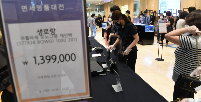 [서울경제] 면세에서 내수로 전환된 해외 고가 패션 브랜드 상품이 오프라인에 풀리면서 수입 패션 애호가들이 새벽부터 줄을 서 대기표까지 받아 쇼핑하는 진풍경이 연출됐다.