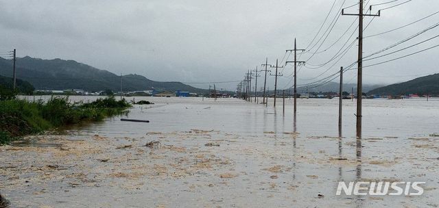 폭우가 삼킨 논과 밭...물 위에 덩그러니 전봇대만