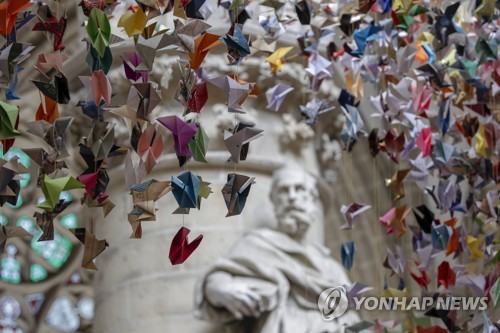 epaselect epa08585167 Origami For Life , an atistic setup of 22 000 origami exposed a Cathedral of Saint Michael and Gudula in Brussels , Belgium, 05 August 2020. Origami For Life is an initiative which aims at raising funds for Hospital Erasme in Belgium. it help fund a COVID-19 special care unit. For each Origami received, a donation of ?5 was made to the Erasme Foundation . Lunch via social network of the Aritist Origami came form 40 countries as far as Australia. Until now Hospital Erasm received 101 000 from this action. EPA/OLIVIER HOSLET