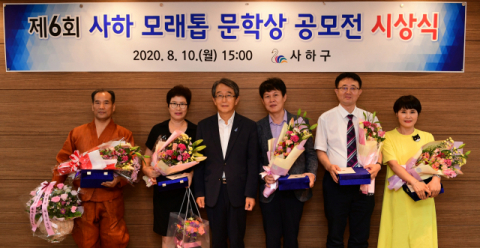 부산 사하구(구청장 김태석)는 지난 8월 10일 오후 신관2층 중회의실에서 ‘제6회 사하 모래톱 문학상 공모전’ 시상식을 가졌다.