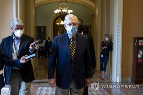 US Senate Majority Leader Mitch McConnell walks from the Senate floor after delivering remarks, on Capitol Hill in Washington, DC, USA, 13 August 2020. The US Senate's summer legislative session has adjourned without a deal being reached by Trump administration negotiators and Democratic leaders on a coronavirus stimulus package. The Senate's recess is not scheduled to end until after Labor Day which falls on 07 September. EPA/MICHAEL REYNOLDS