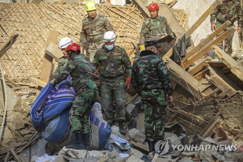 Azerbaijan rescuers work on the devastated houses allegedly damaged by recent shelling in Ganja, Azerbaijan, 11 October 2020. Foreign Ministers of the Republic of Azerbaijan and the Republic of Armenia, with the mediation of the Russian Federation in Moscow, reached an agreement on compliance with the humanitarian ceasefire from 12:00 on 10 October 2020. Armed clashes erupted on 27 September 2020 in the simmering territorial conflict between Azerbaijan and Armenia over the Nagorno-Karabakh territory along the contact line of the self-proclaimed Nagorno-Karabakh Republic (also known as Artsakh). EPA/AZIZ KARIMOV