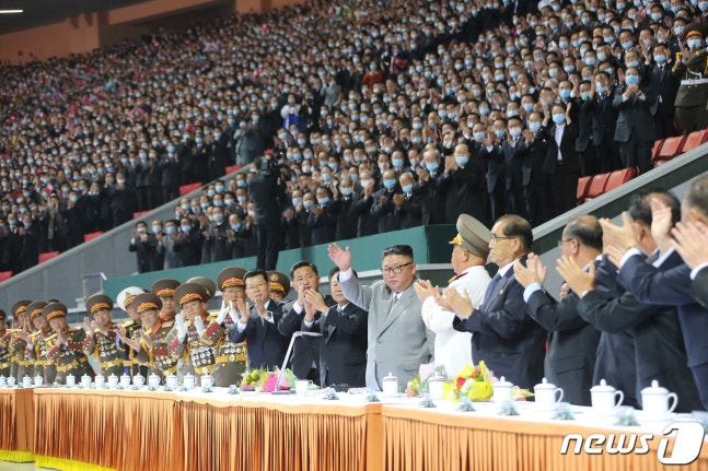 (평양 노동신문=뉴스1) = 김정은 북한 국무위원장이 11일 당 창건 75주년을 경축하는 대집단체조와 예술공연 '위대한 향도'를 관람했다고 노동당 기관지 노동신문이 12일 보도했다. 공연이 진행된 평양 5월1일경기장에는 김 위원장을 비롯해 최룡해·리병철·김덕훈·박봉주 정치국 상무위원회 위원들과 당·정·군 간부, 경축대표, 열병식 참가자, 참관 성원, 평양 시민 등이 참석했다.