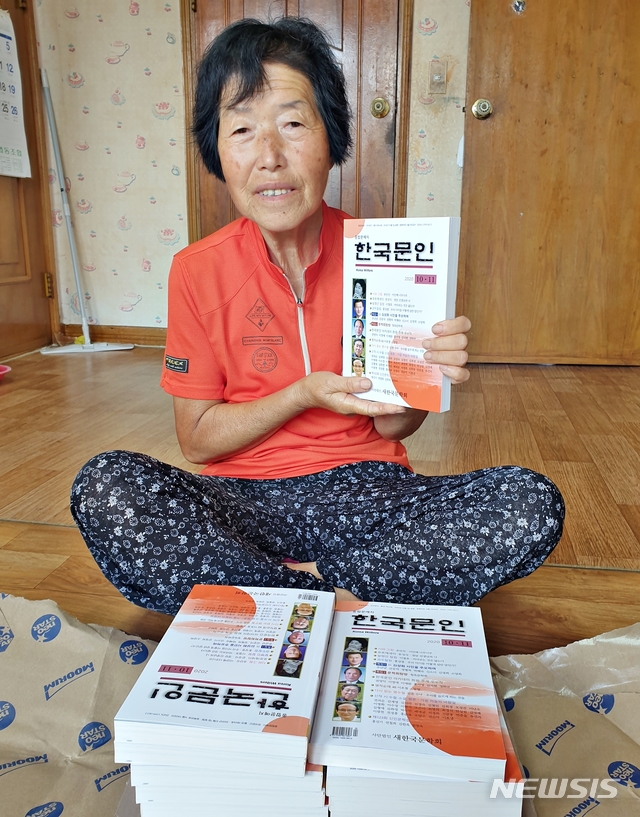 [증평=뉴시스]123회 한국문인협회 신인문학상 수상자 연철희씨. (사진=증평군 제공) [email protected] [증평=뉴시스] 강신욱 기자 = 60대 중반에 한글을 배워 시인으로 등단한 할머니가 화제다.