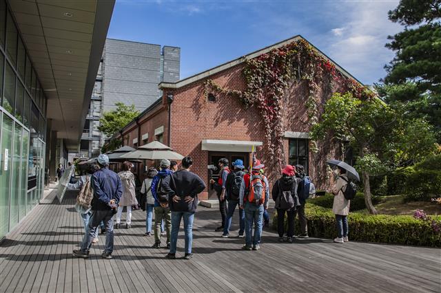 참석자들이 이날 투어의 종착지인 근대문화유산 경성방직 사무동 앞에서 해설을 듣고 있다. 투어는 문화재청이 근대문화유산으로 지정한 타임스퀘어의 경성방직 사무동을 둘러보는 것으로 마무리됐다. 사무동 건물은 지금 젊은이 사이 이른바 ‘빵지순례’의 핫플레이스로 떠오른 빵집 ‘오월의 종’이 쓰고 있어 하루 종일 손님으로 북적인다. 근대문화재 활용의 모범사례가 아닐 수 없다. 필자를 비롯한 일행 몇몇은 투어가 끝나고 영등포소방서 옆 중국집 송죽장에서 짬뽕이며 짜장면을 먹었다. 송죽장은 오래된 가게지만 젊은 손님들이 길게 줄을 서는 명소가 됐다. 이렇게 영등포의 문화적 저력은 간단치가 않다.글 서동철 문화재 위원