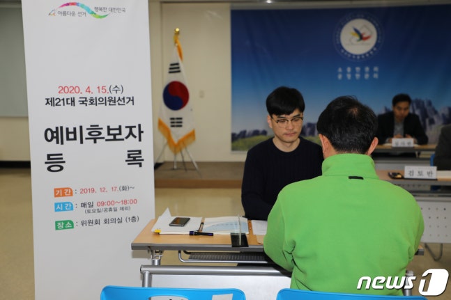 (광주=뉴스1) 허단비 기자 = 제21대 국회의원선거 예비후보자 등록이 시작된 17일 오전 광주 서구 치평동 서구선거관리위원회에서 예비후보자 등록이 시작돼 한 후보가 서류접수를 진행하고 있다.2019.12.17/뉴스1