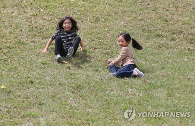 (서울=연합뉴스) 김인철 기자 = 28일 오전 서울 송파구 올림픽공원 피크닉장에서 어린이들이 즐거운 시간을 보내고 있다. 2019.4.28
