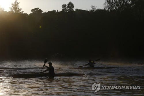 Canoeists paddle on the Emmarentia Dam in central Johannesburg, South Africa, 23 January 2020. The dam is popular by the canoeists and is a favorite training dam for paddlers who compete in the countries river based canoe races. EPA/KIM LUDBROOK