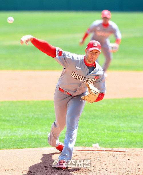 SK 킹엄이 5일 인천 SK행복드림구장에서 진행된 SK 와이번스 퓨처스와 수펙스의 자체 연습경기에 선발 등판해 힘차게 공을 던지고 있다. .2020. 4. 5.