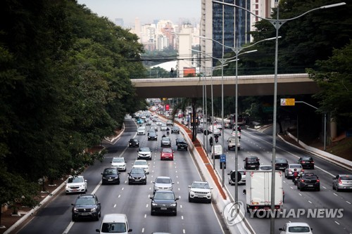General view of an avenue with vehicle traffic, in Sao Paulo, Brazil, 13 May 2020. Brazil faces the growing advance of the disease amid a pulse between the governors and the President, who is pressing to open even the country's gyms and hairdressing salons. EPA/Fernando Bizerra