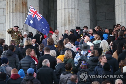 People gather during the ANZAC Day dawn service at the Shrine of Remembrance in Melbourne, Australia, 25 April 2019. Anzac Day, held annually on 25 April, is a national day of remembrance across Australia and New Zealand, which commemorates the people who lost their lives or served in wars and conflicts. The day coincides with the first landing of the Anzacs at Gallipoli, Turkey, in World War One. EPA/DAVID CROSLING AUSTRALIA AND NEW ZEALAND OUT