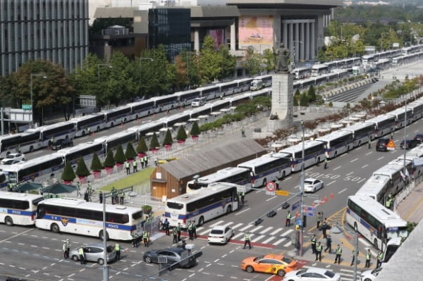 보수단체가 개천절 집회를 예고한 지난 3일 서울 종로구 광화문 광장 일대가 펜스와 차벽으로 둘러 쌓여있다. /사진=뉴스1[여의도 브리핑]은 각 정당이 주목한 이슈는 무엇인지, 어떤 공식 입장을 냈는지 살펴봅니다. 때로 화제가 되고 때로는 이슈 몰이에 실패한 정당의 말들을 집중 조명합니다. 매일 아침 찾아뵙겠습니다. <편집자 주>