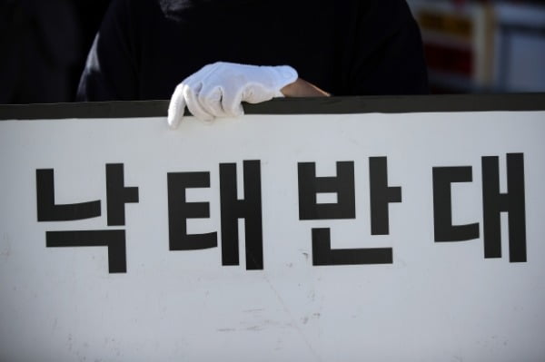 정부가 형법상 낙태죄를 유지하되 임신 초기인 14주까지 낙태를 허용하는 내용의 법 개정안을 입법예고한 지난 7일 서울 국회 앞에서 낙태 반대를 주장하는 시민이 시위하고 있다. /사진=연합뉴스