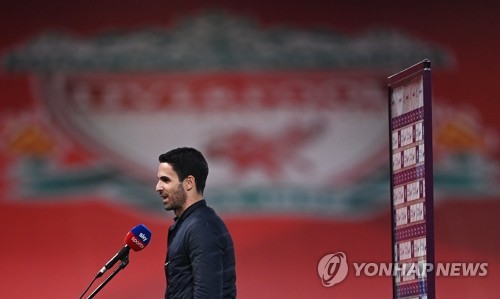 Arsenal manager Mikel Arteta gives an interview before the English Premier League match between Liverpool and Arsenal London in Liverpool, Britain, 28 September 2020. EPA/Laurence Griffiths / POOL EDITORIAL USE ONLY. No use with unauthorized audio, video, data, fixture lists, club/league logos or 'live' services. Online in-match use limited to 120 images, no video emulation. No use in betting, games or single club/league/player publications.