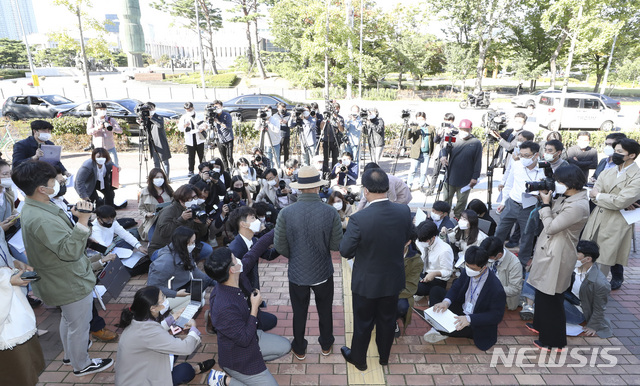 [서울=뉴시스] 최진석 기자 = 북한군에 피격돼 숨진 해양수산부 산하 서해어업지도관리단 소속 공무원 A씨의 형 이래진 씨가 6일 서울 국방부종합민원실 앞에서 정보공개청구에 앞서 기자회견을 하고 있다. 2020.10.06.