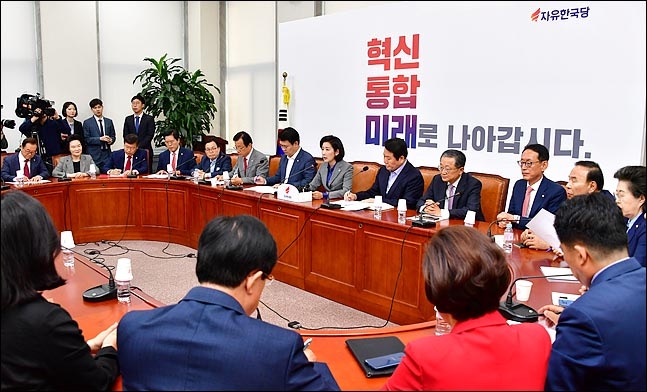 28일 오전 국회 자유한국당 회의실에서 나경원 원내대표와 정용기 정책위의장 등이 참석한 가운데 원내대책회의가 진행되고 있다. ⓒ데일리안 박항구 기자